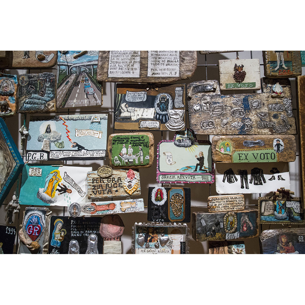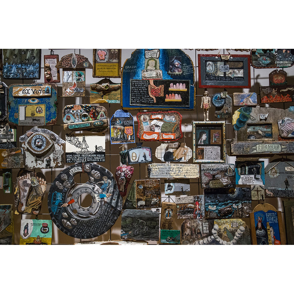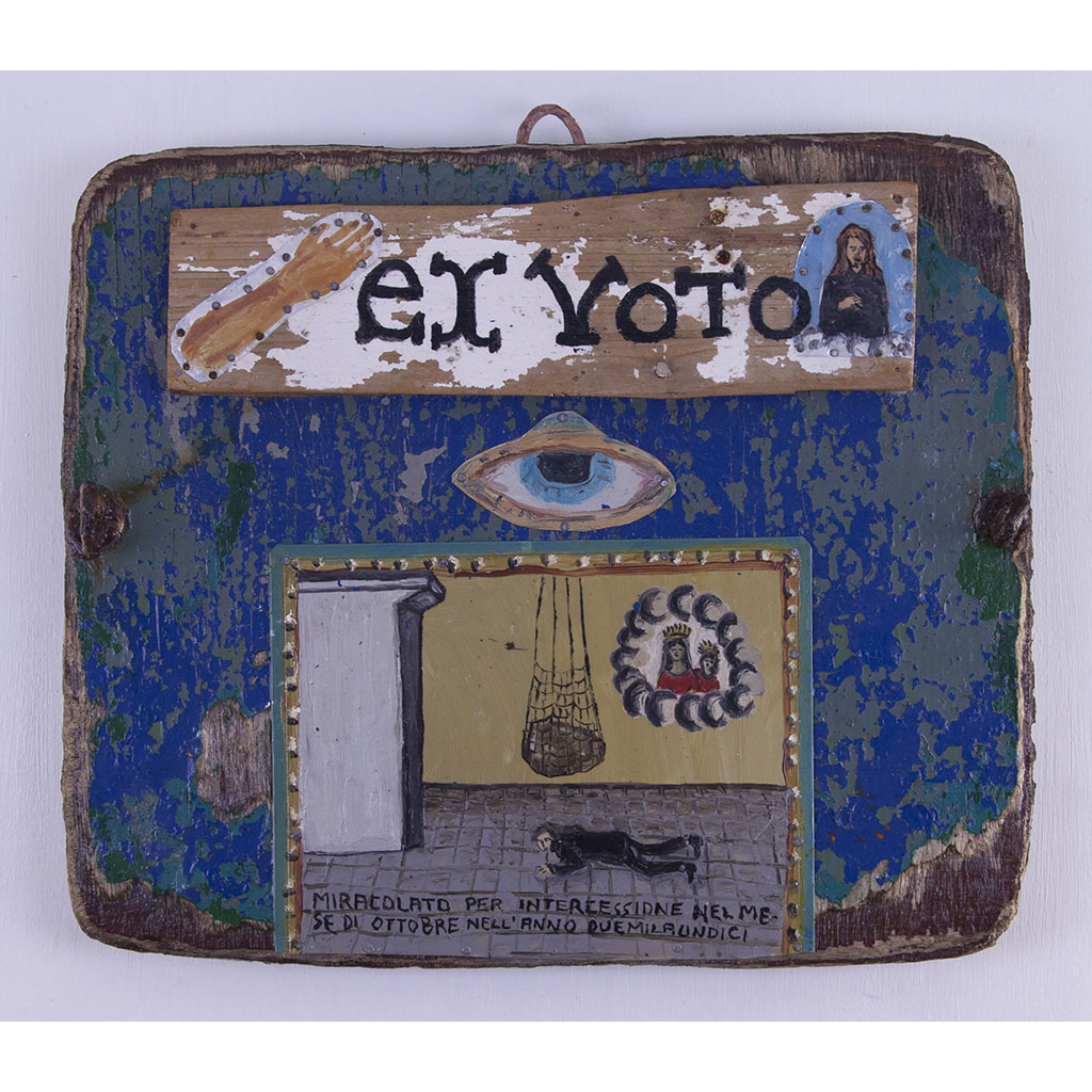 La rassegna comprende circa 200 tavolette votive realizzate tra il 2015 e il 2017 – ispirate alla tradizione italiana dei “per grazia ricevuta” e a quella messicana dei “retablos” – e il video La lingua dei miracoli, che si inserisce nel programma di Biografilm Festival. International Celebration of Lives. I lavori ripercorrono le vicende autobiografiche dell’artista, interpretandole come effetti di prodigiosi interventi ultraterreni.